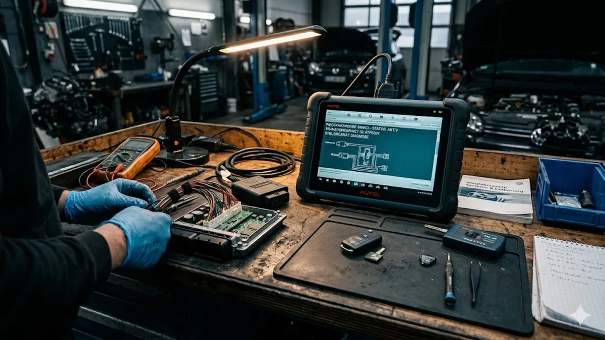 Nach dem Einbau eines neuen oder gebrauchten Steuergeräts muss die Wegfahrsperre angelernt werden. So läuft die Anpassung bei Mercedes, VW und BMW ab.